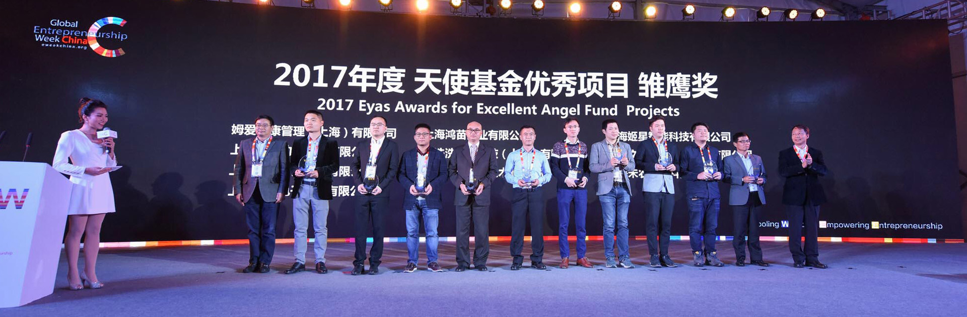 姆爱荣获2017全球创业周中国站天使基金优秀项目”雏鹰奖“,上海市副市长汤志平为姆爱颁奖。