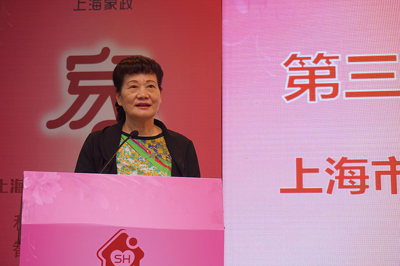 原上海市计生委主任及上海市家庭服务业行业协会会长谢玲丽讲话